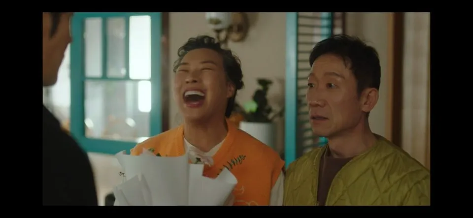 다시 과거로 돌아가 시니어인턴 면접날이 보여집니다. 실제나옥희는 다른 얼굴을 하고 있었고, 합격이 내정된 것처럼 통화를 하는 나옥희와 충돌하는 공기철 (=나옥희로 위장한 사람)