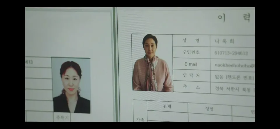 그리고 수사관은 임순의 요청대로 나옥희 여사 신분조회를 요청하는데... 진짜 나옥희 얼굴과 시니어인턴 나옥희 이력서 사진이 다른 것을 확인합니다. 그리고 자신이 조사하던 사건의 공기철 얼굴을 확인하면서 임순의 제보대로 진범인 공기철이 현재 시니어 인턴으로 있는 것을 알게 됩니다.