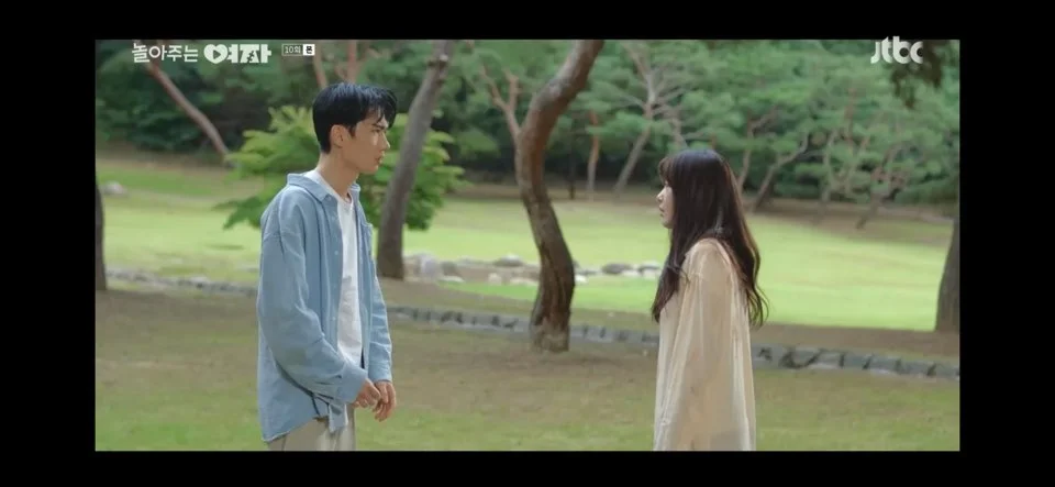 정말 아무일 없이 혼자 산책하던 은하는 지환의 목소리를 듣고 뒤돌아봤을 뿐인데 서지환은 너무 반가운 나머지 뛰어가서 걱정했던 마음을 버럭 화를 내요.