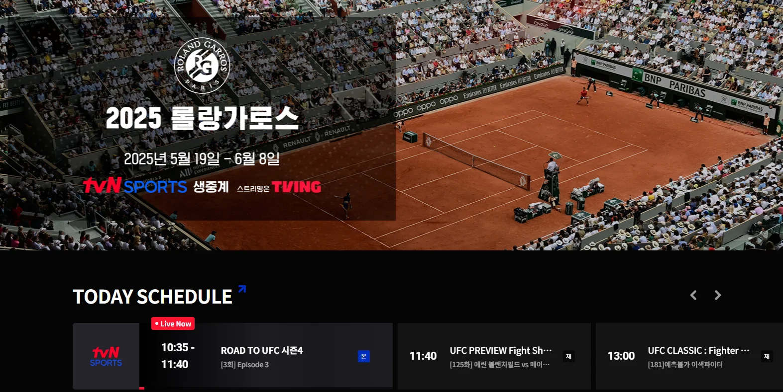 한국에서는 tvN, tvN sports가 2025년 프랑스 오픈의 공식 중계권을 보유하고 있어서 생중계 보실 수 있으며 한국의 ott 서비스로는 티빙(TVING)을 통해 롤랑가로스 전 경기를 생중계로 시청하실 수 있습니다. 티빙은 다양한 디바이스에서 스트리밍을 지원하므로, 스마트폰, 태블릿, PC 등에서 편리하게 경기를 즐기실 수 있습니다