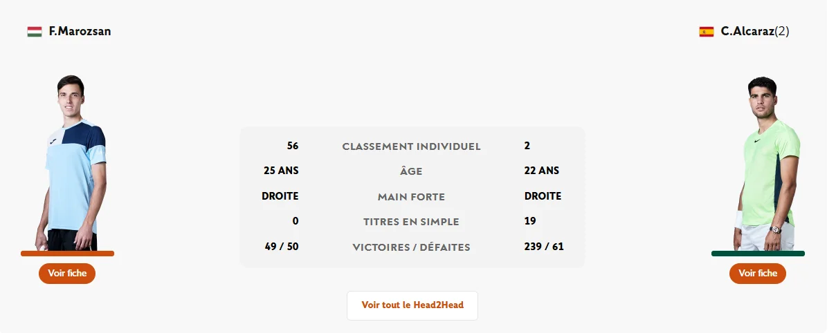 - 카를로스 알카라즈 (2번 시드) vs 파비안 마로잔: 알카라즈는 2회전에서 헝가리의 파비안 마로잔과 맞붙습니다. 마로잔은 2023년 로마 마스터스에서 알카라즈를 꺾은 바 있어, 이번 경기도 주목됩니다.