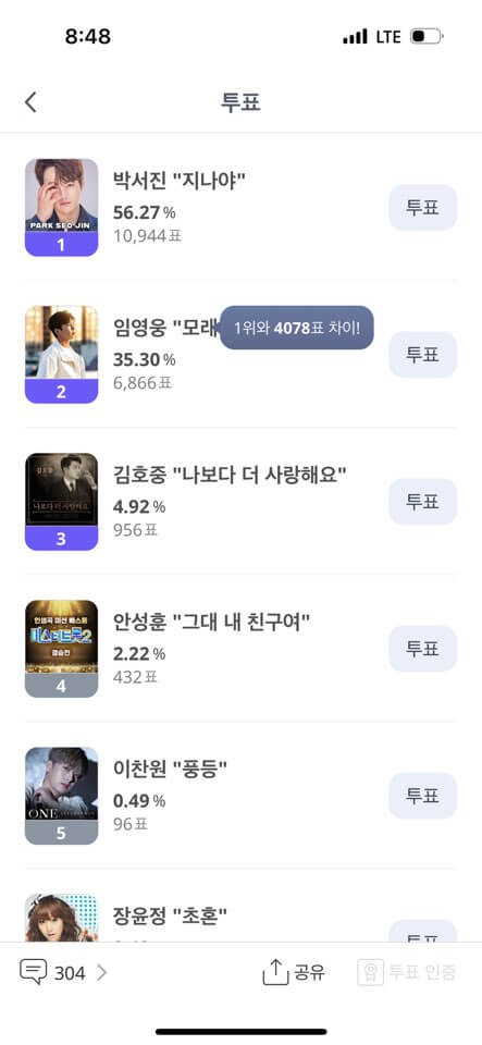 *참고로 M/V, 베스트송 투표는 리스트 아래에 있어서 화면을 좀 내리시면 곧 보입니다!