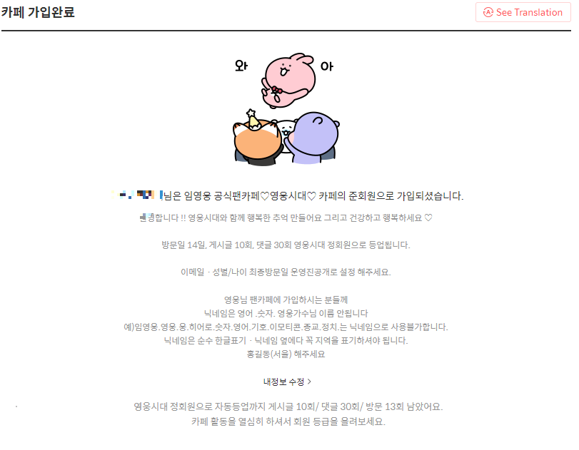 | 임영웅 공식팬카페 영웅시대 정회원까지 셀프 확인방법 (0) | 2023.06.09 |