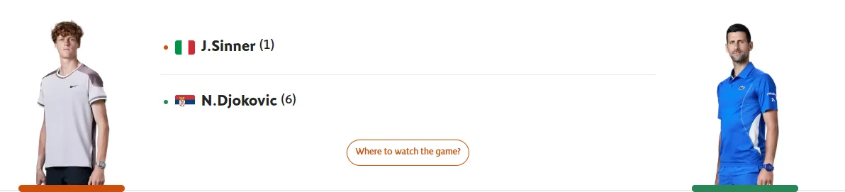 1️⃣ 노박 조코비치(6번 시드) vs 야닉 시너(1번 시드)